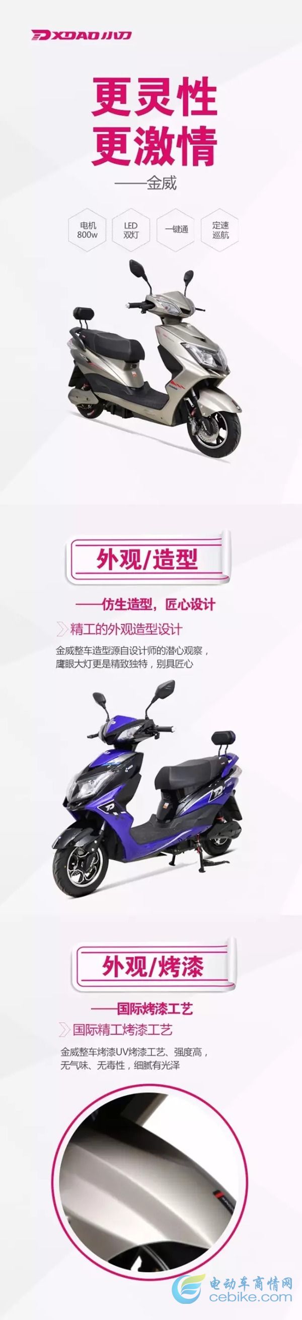天津市小刀电动车业有限公司创建于2003年,坚持高起点、高标准,借电动车行业快速发展的势头,在短短的几年内从小到大、从弱到强,成为电动车行业名列前茅的企业。