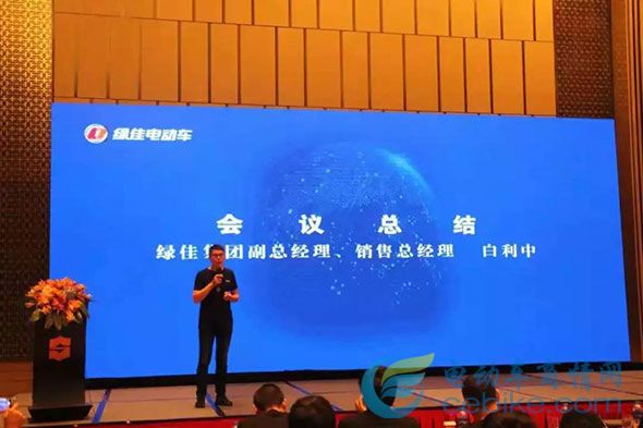 最后,绿佳集团副总经理、销售总经理白利中先生为大家做会议总结。从企业、产品和市场单方面为经销商们总结了新国标施行后拥有的优势和机会。白总表示由于新国标的实施,电动车行业将进入洗牌阶段,也许当前市场上近千家的电动车企业会锐减至几十家,但是拥有电动车全套资质的绿佳必将会是为数不多存活下来的企业之一。同时,白总预测未来三年将会有2.5亿辆的电动车被逐渐淘汰,电动车行业年销售额将会从3000万辆上升至6000万辆,各品牌经销商将迎来一片蓝海,这也为绿佳的经销商家人们打了一剂强心针。