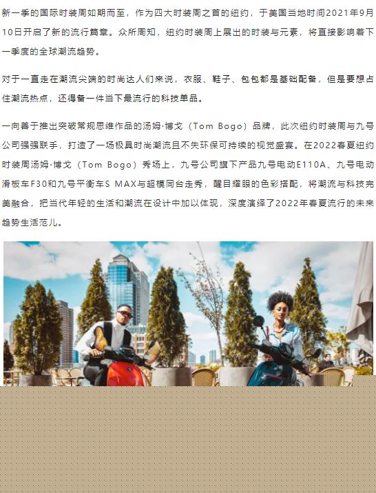 [提要] 九号公司智能产品齐聚纽约时装周:时尚、科技、潮流范儿凸显
